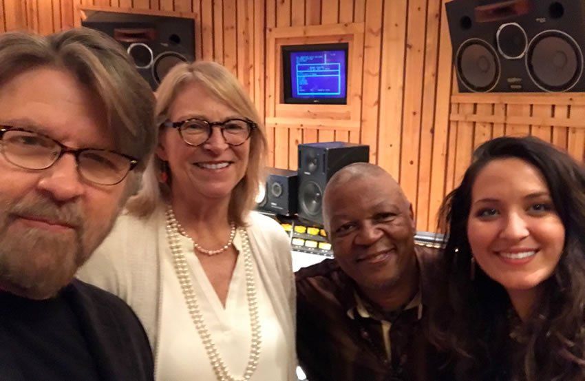 Percussion session for Ngizohamba at the Power Station/Berklee/NYC with Assistant Engineer Gloria Kaba, Percussionists Joe Galeota and Casey Scheuerell, composer and percussionist on “the pods”, Suzanne Dean, and Engineer Stephen Webber.